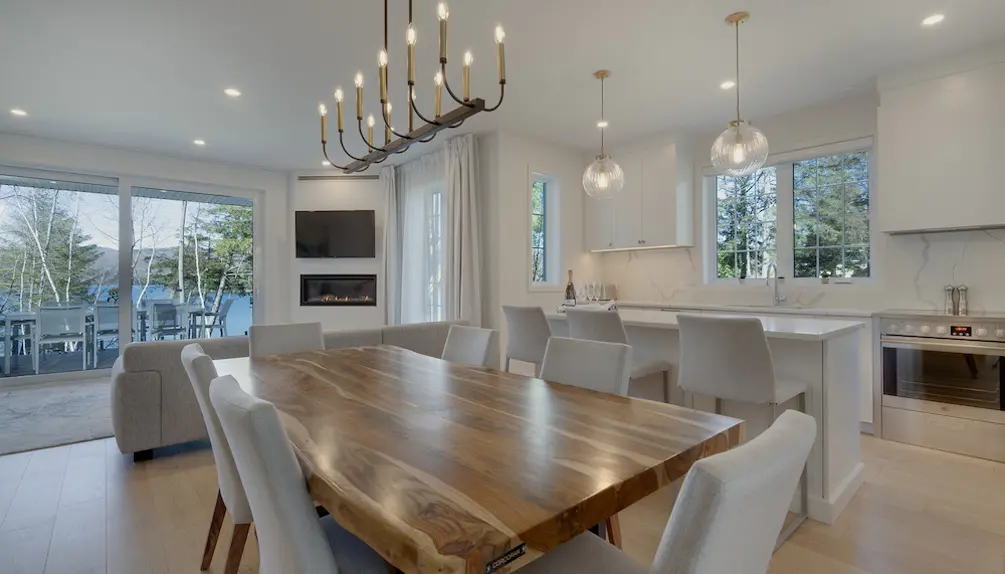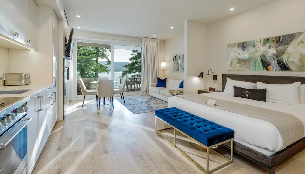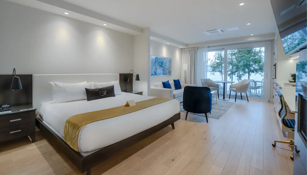 Le Ripplecove propose des hébergements élégants variés : les chambres du bâtiment classique, les suites du Pavillon du lac Massawippi, les condos-terrasses modernes ou les villas élégantes. Chaque espace crée une atmosphère chaleureuse et luxueuse, parfaite pour les soirées d'hiver.