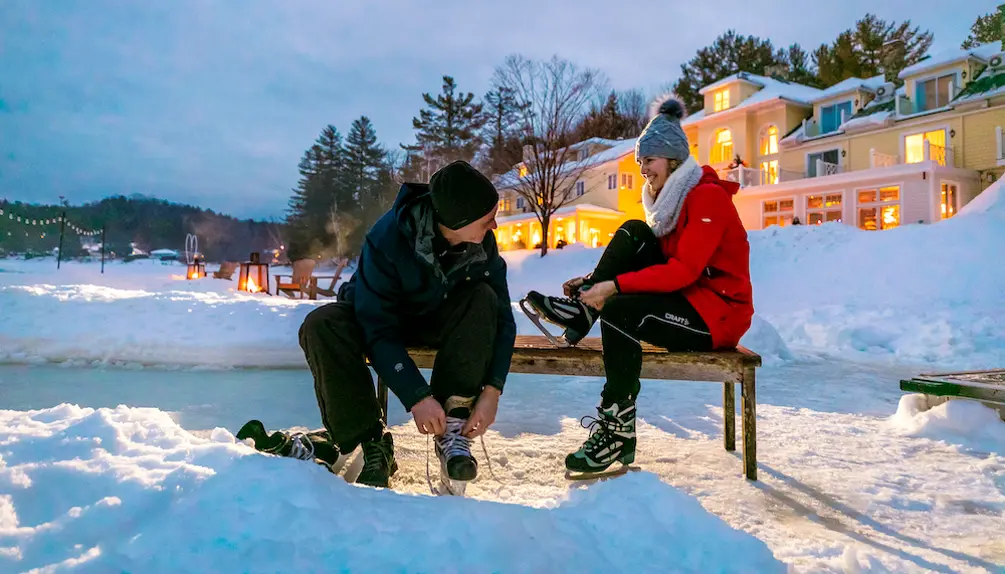 Découvrez la magie de l'hiver au Ripplecove Hôtel & Spa, niché sur les rives du lac Massawippi, et laissez-vous captiver par le spectacle féerique des paysages enneigés.