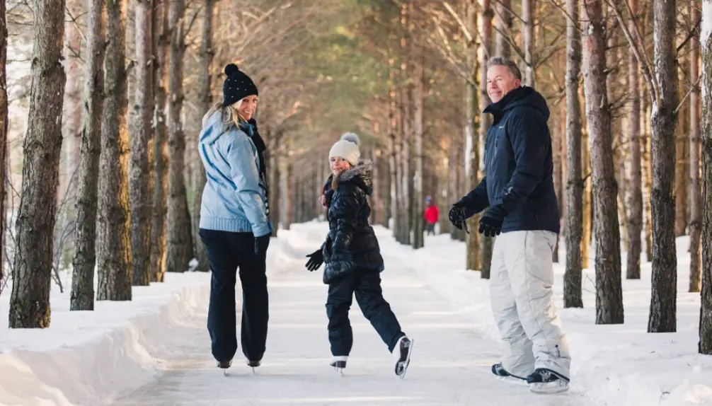 Patiner dans les sentiers d’une forêt, de jour comme de soir, demeure une activité qu’il faut absolument expérimenter! Bien à l’abri du vent d’hiver, filer sur une glace bien lisse entretenue par des zambonis, avec en tableau des pins chargés de neige, c’est assez féérique! Services offerts : stationnement gratuit, restauration, locations de patins, raquettes et traineaux, affûtage, abris chauffés, accueil de groupes, chiens acceptés (don libre).