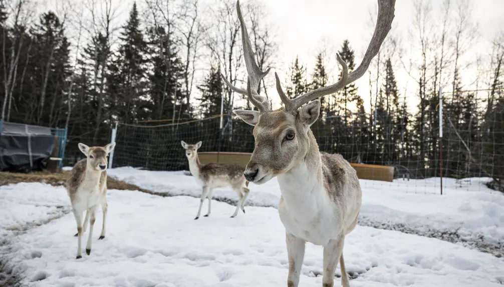 Vous choisirez un sentier, vous arrêterez quelques minutes pour donner un peu de moulée aux animaux, avant de faire une petite pause au restaurant le temps d'un bon chocolat chaud. Vous repartirez alors dans le labyrinthe de sentiers, à moins que vous échangiez vos patins contre des raquettes pour vous enfoncer un peu plus loin dans la forêt.