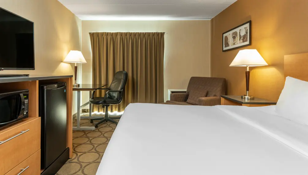En choisissant une chambre à l'Hôtel Comfort Inn Sherbrooke, vous vous offrez une pause de confort et de détente bien méritée après une journée de travail ou de découverte. Notre personnel chaleureux vous accueille avec plaisir et se fera un devoir de vous dévoiler les merveilles de notre région. N’hésitez pas à leur faire part de vos besoins pour un séjour à la hauteur de vos attentes. Notre emplacement légèrement en retrait vous assure une tranquillité incomparable, tout en restant à quelques minutes du cœur vibrant de la ville.