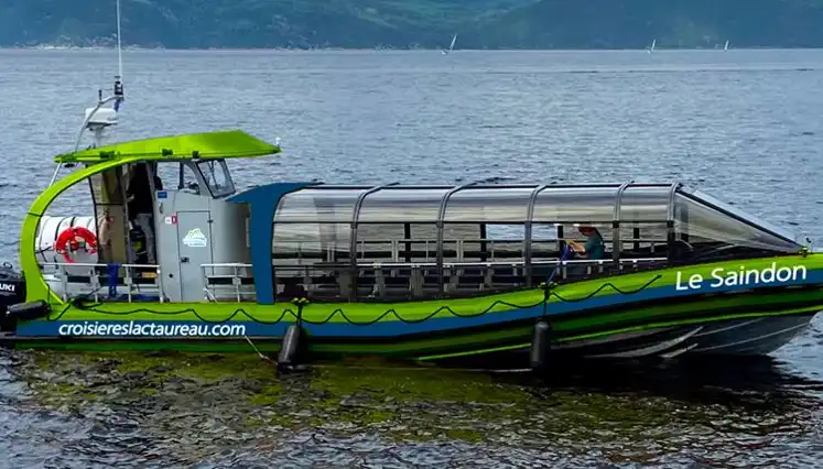 Croisière vous menant directement au barrage en traversant tout le lac. Au passage, admirez plages, îles, faune ailée et la nature environnante jusqu’à cet impressionnant ouvrage hydroélectrique où nous ferons escale pour admirer le tout de près. Croisière animée.