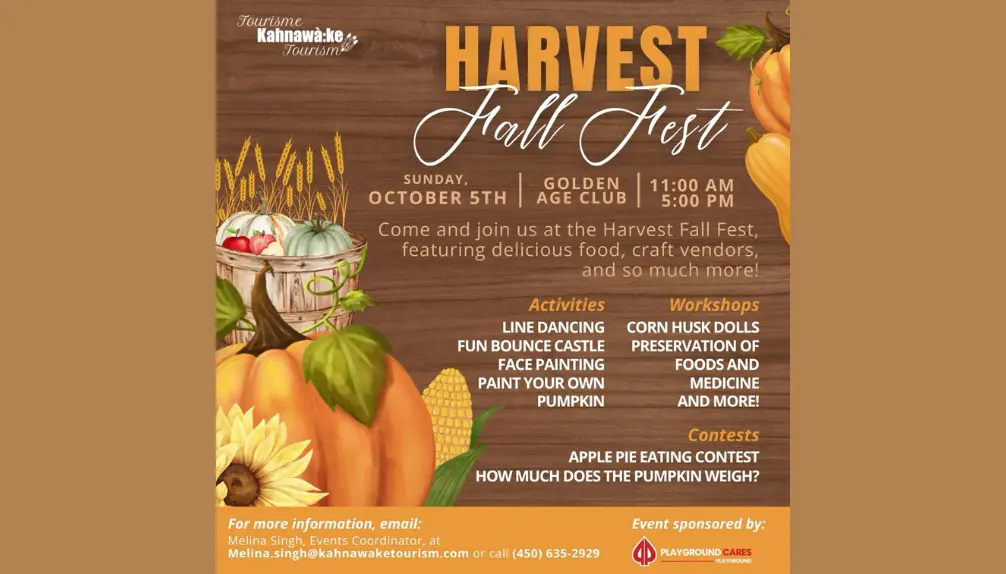 Alors que l’automne s’installe, nous vous invitons à Kahnawà:ke pour le 7e Festival d’automne des récoltes — une célébration enracinée dans le calendrier culturel et l’abondance du temps des récoltes.