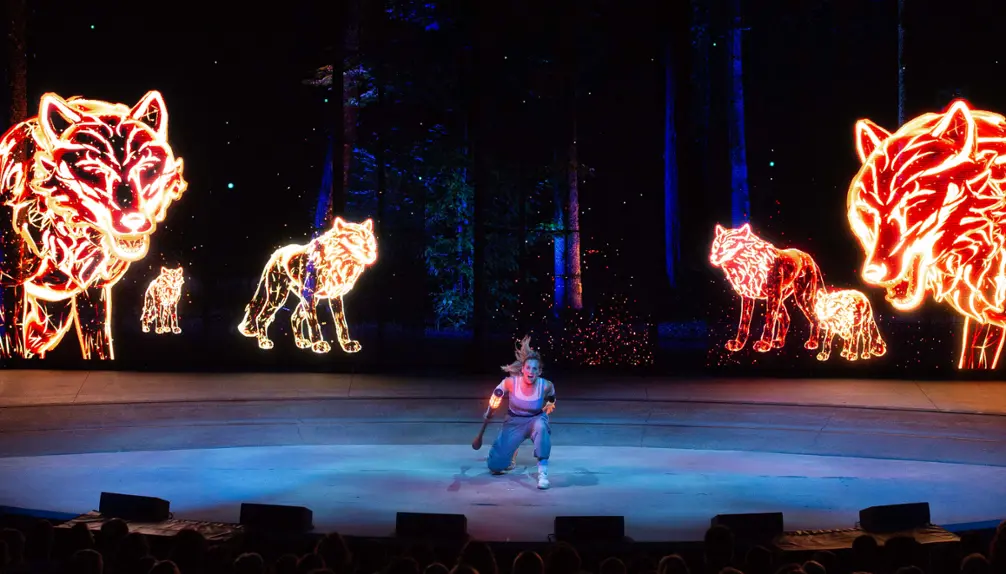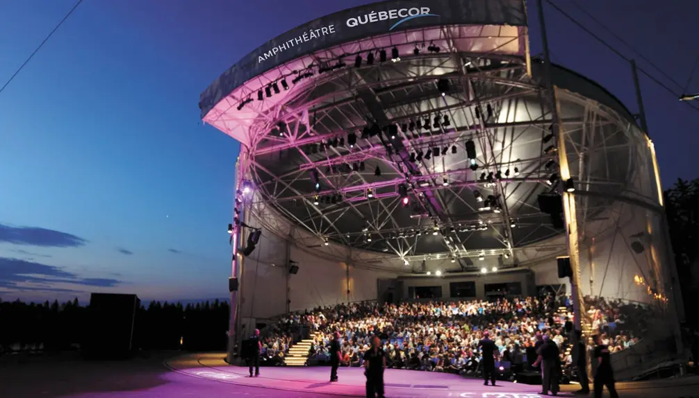 L’amphithéâtre couvert et tournant Québecor est unique au monde. Le spectacle y prend vie à la tombée de la nuit pour dévoiler tout le potentiel des éléments visuels, notamment des projections vidéo immersives.