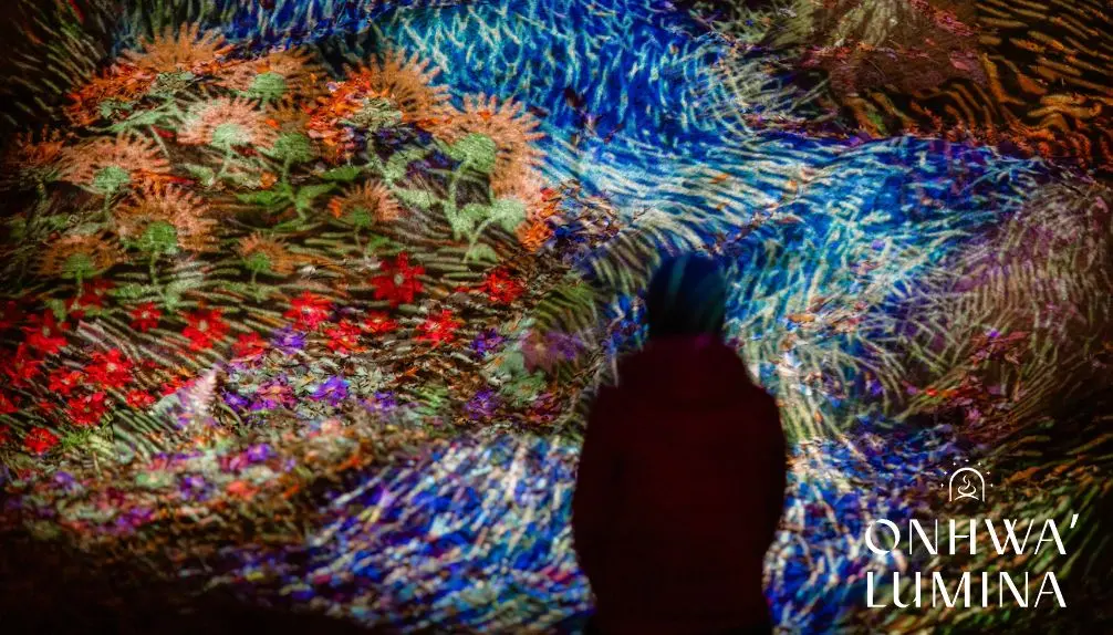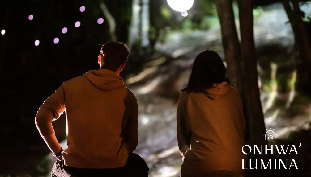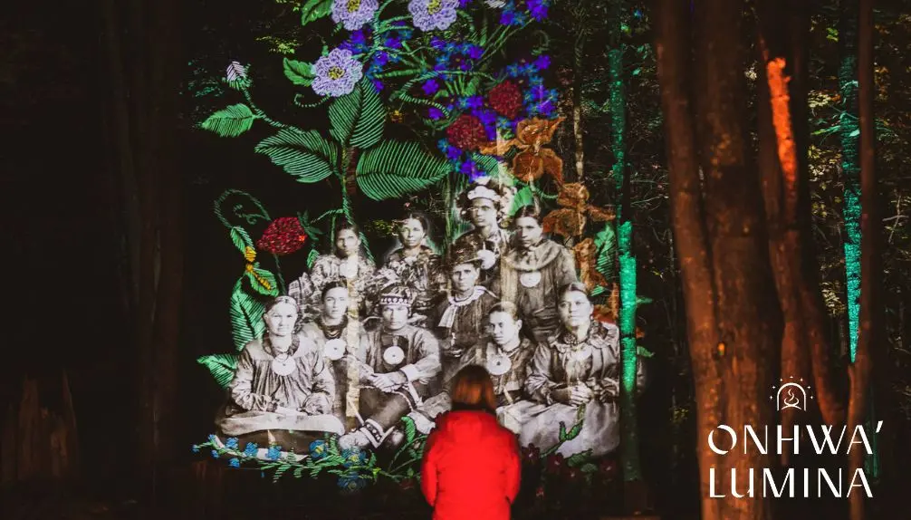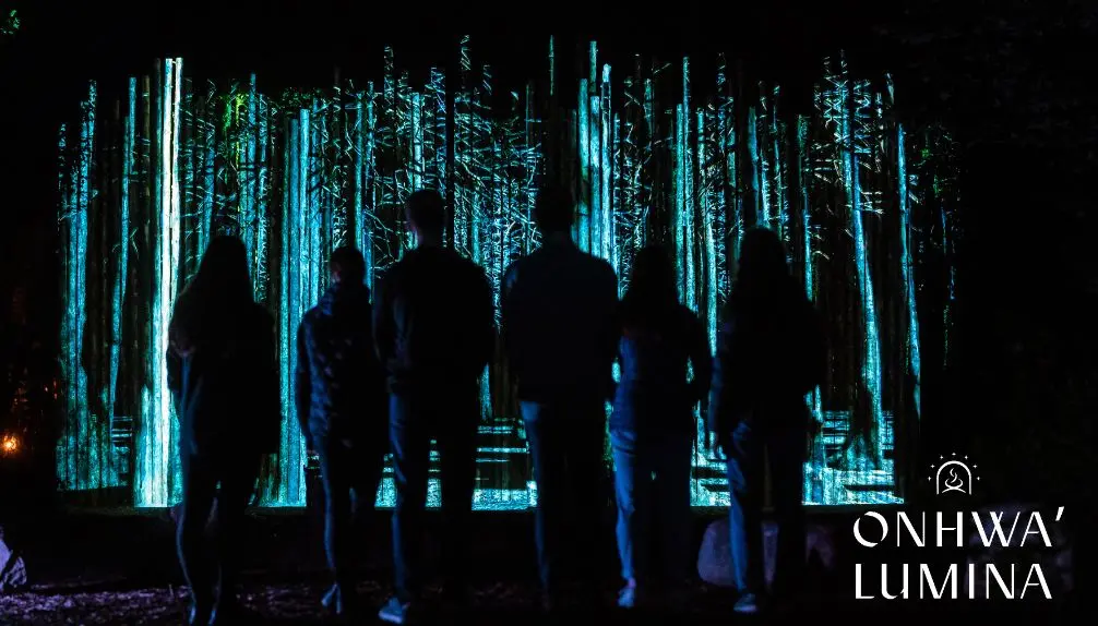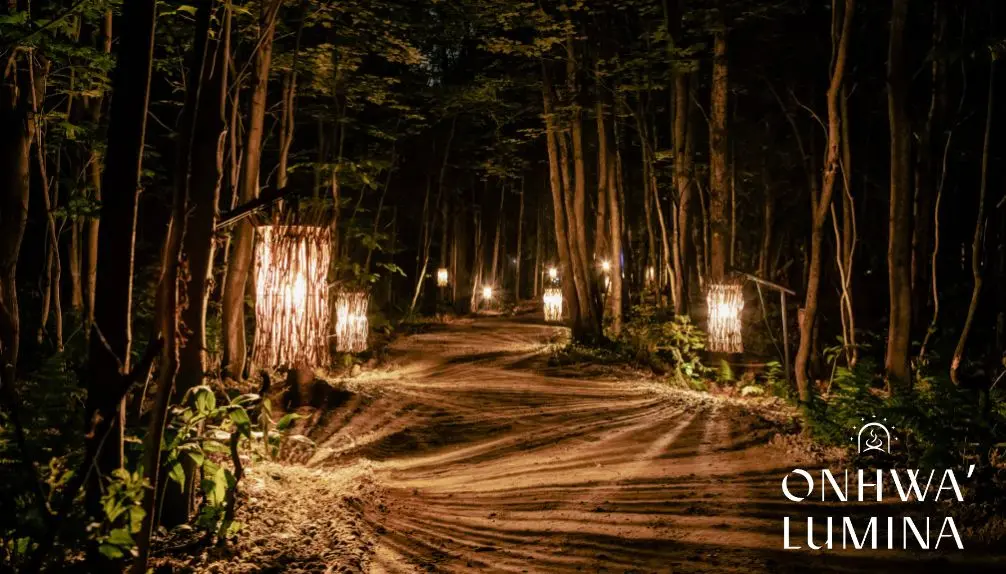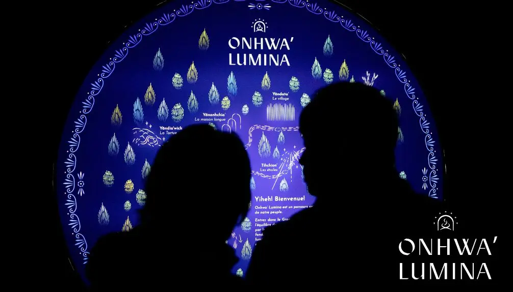 Quand la nuit tombe, la forêt de Wendake s’illumine. Créé par Moment Factory, Onhwa’ Lumina est un parcours nocturne enchanté de 1,2 km où lumière, musique et récits ancestraux s’unissent pour raconter la culture wendat autrement.