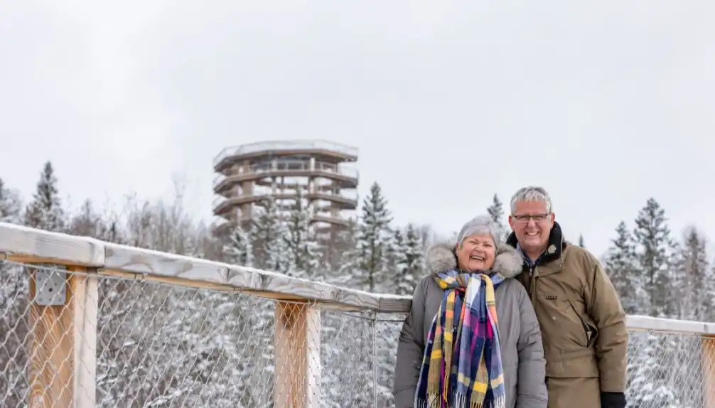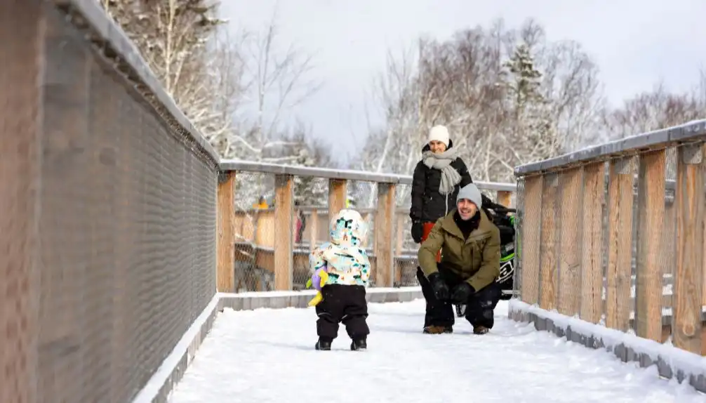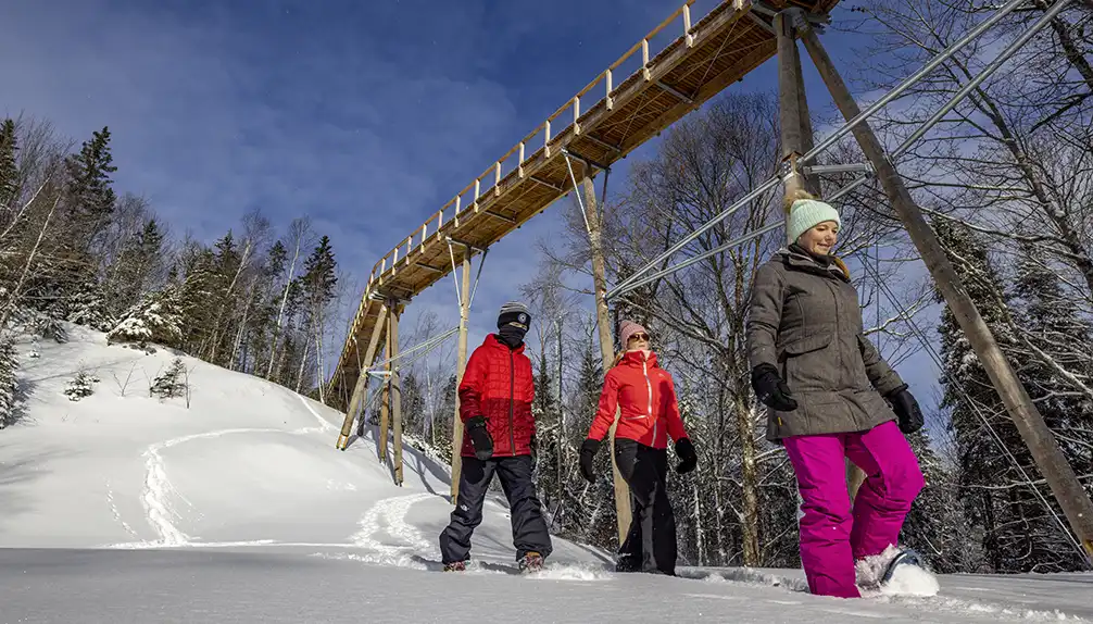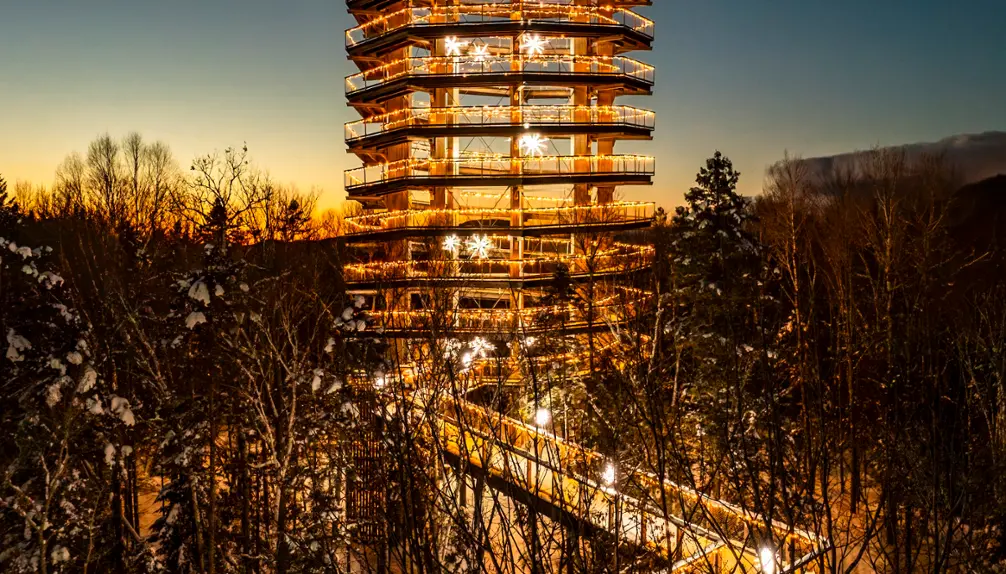 Nouveauté de l’hiver 2025-2026, Lumagica fait briller le Sentier des cimes d’une douce ambiance lumineuse. À la tombée du jour, le parcours se transforme en promenade hivernale illuminée, unique au Québec et accessible à tous, aux familles avec poussette, aux personnes en fauteuil roulant, ainsi qu’à tous ceux qui souhaitent profiter d’un moment magique en plein air.