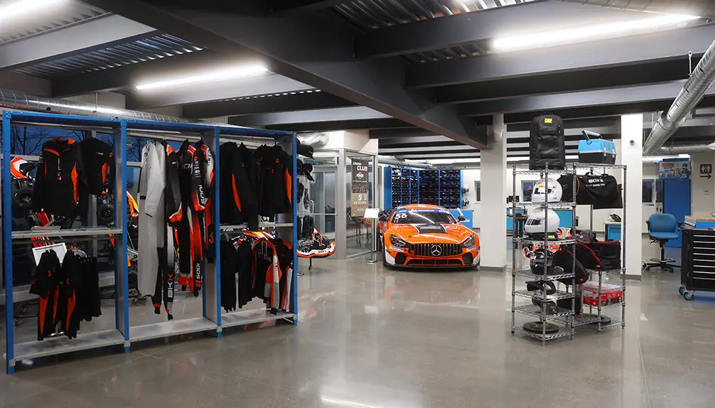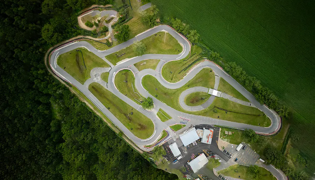 Trois configurations de piste, atelier de mécanique, boutique, entreposage de karts, salle de réunion, tables extérieures, estrades panoramiques, et grand stationnement gratuit (aussi pour autobus) .