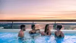 SKYSPA vous propose un concept unique avec ses terrasses en plein ciel, et sa vue imprenable sur le fleuve pour faire le plein de vitalité dans un environnement serein. Situé au 17e étage du Complexe Jules-Dallaire, SKYSPA vous offre des bains californiens, saunas finlandais, bains vapeur, chute nordique, aires de repos, massothérapie, ainsi qu’un délicieux bistro pour vous réénergiser. Ses deux terrasses vous permettent de choisir la zone silence ou la zone voix basse, selon l’expérience que vous désirez vivre.