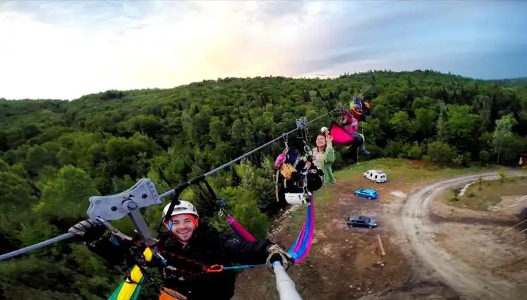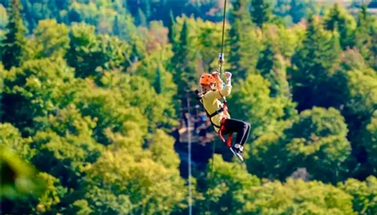 Nous offrons un parcours de 4 méga-tyroliennes parmi les pluslongs et la plus haute tyrolienne au Canada. Les méga-tyroliennes permettent de voler comme un oiseau à plus de 115 mètres du sol en parcourant une distance totale de 2,6 km. Vous traverserez toute la montagne de bord en bord, la plus longue tyrolienne approchant le kilomètre (3215 pieds).